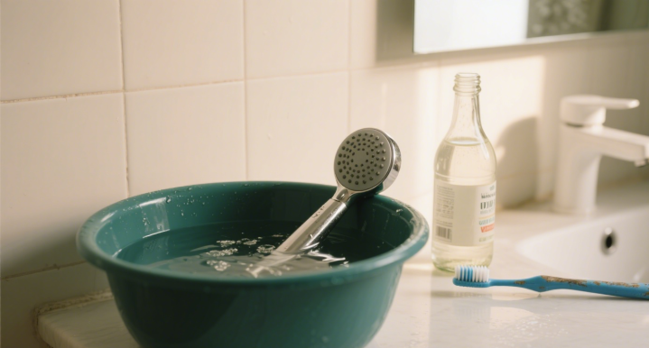 这里跟你说个小技巧:要是水垢特别厚,泡完可以用旧牙刷轻轻刷一下出水孔,那些藏在细缝里的水垢就全掉了,不用使劲刮,免得把花洒刮坏。